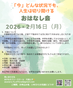 - 個別相談「素直に相談して良かったな」中学3年生の感想福岡県みやま市にあるフリースクールあすなろフリー… 続きを読む: 個別相談「素直に相談して良かったな」中学3年生の感想