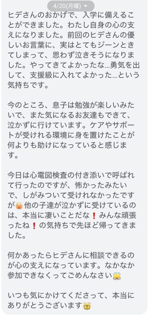 入学後のご様子|安心の中で一歩ずつ進んでいます(保護者の声)