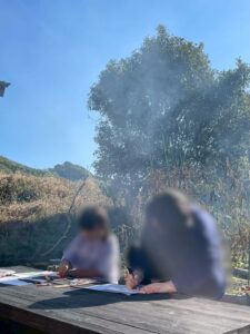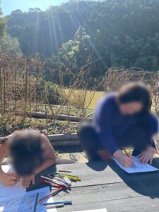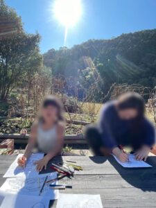 外で青空アート(塗り絵)をすることに。