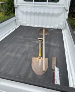 軽トラックと農具を準備しました。