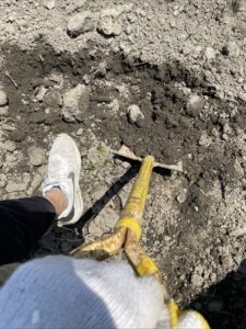 平スコップと剣先スコップを借り、