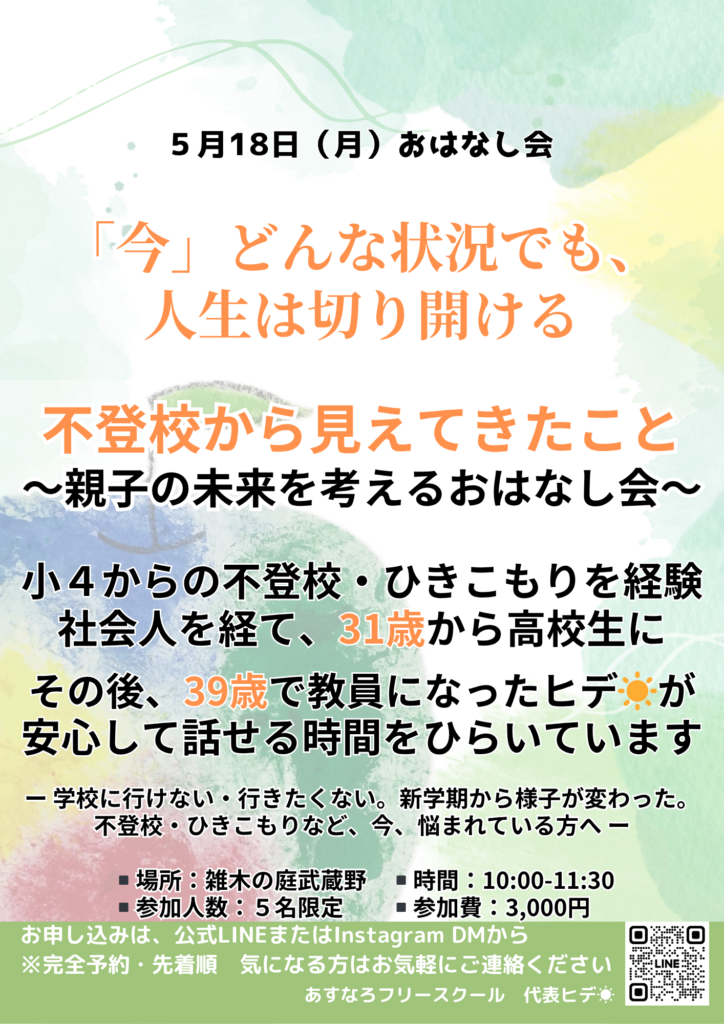 不登校支援2026-04-295月のおはなし会のご案内 連休明けがつらい子どもへ|不登校・行き渋りのリアルと関わり方