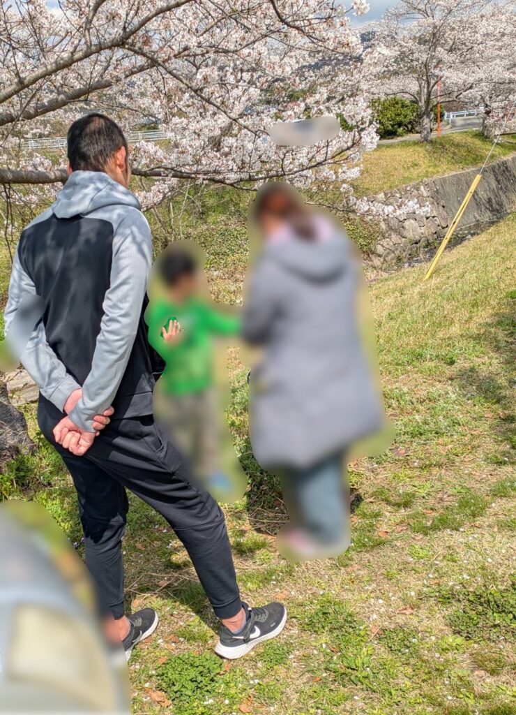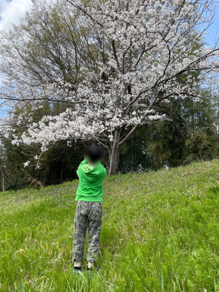 桜を見ながら