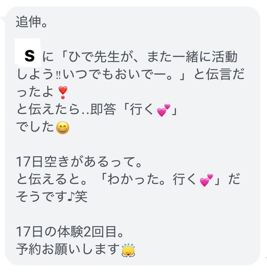 👉笑顔で返事をしてくれるようになりました
